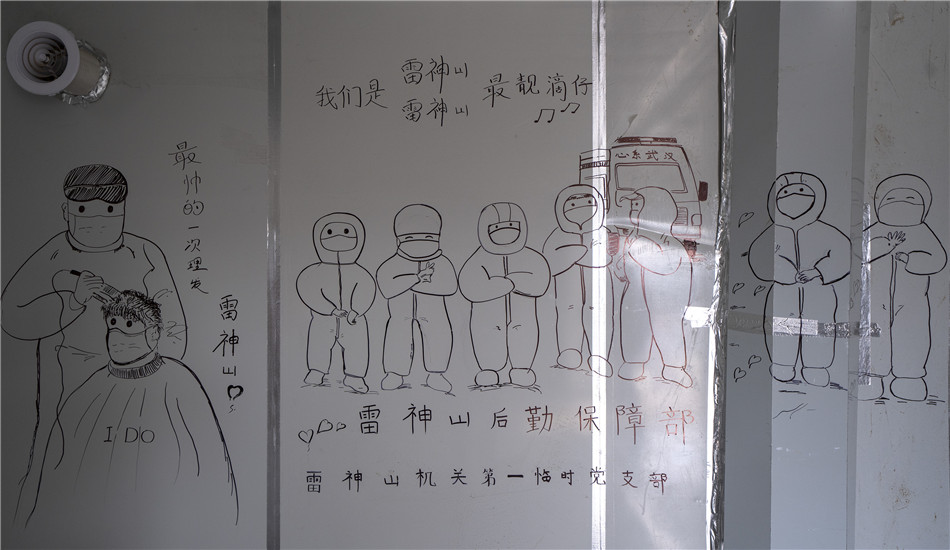 这是3月4日在武汉雷神山医院“艺术长廊”里拍摄的图画。 雷神山医院建成后,各地医疗队进驻这里,全力以赴救治患者。 雷神山医院走道间的墙,逐渐成为医护人员和工作人员表达内心感受的窗口,他们在此画画、写字...... 温情的笔触、有力的画笔,寄托了美好的祝愿,也展示了他们战胜疫情的信念与决心! 新华社记者 程敏 摄