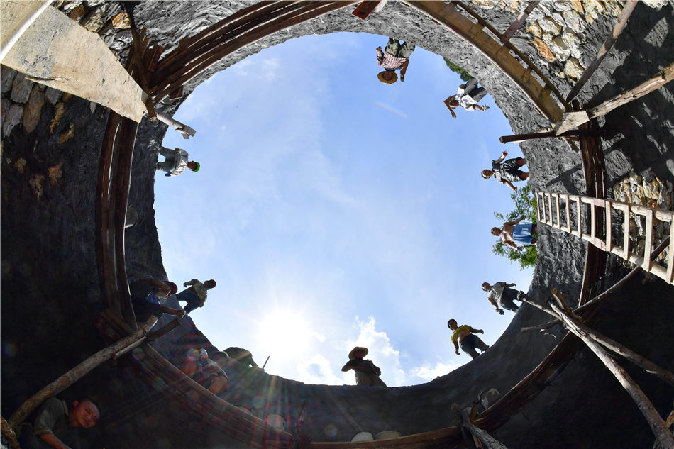 在广西大化瑶族自治县板升乡弄勇村,群众在修建家庭水柜(2017年9月2日摄)。 广西有近一半贫困人口生活在石漠化地区,涉及数十个县区。这里也是广西饮水保障程度最低的地区,解决贫困人口饮水问题是广西脱贫攻坚战“硬仗中的硬仗”。 “十三五”以来,广西加快实施农村饮水安全巩固提升工程。因地制宜,采取新建、扩建及管网延伸等多种措施,补齐贫困地区水利薄弱短板,进一步提升石漠化地区群众饮水安全保障水平,助推脱贫攻坚。 新华社记者 黄孝邦 摄