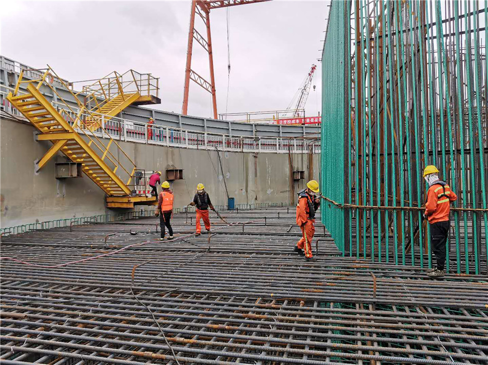 施工人员在深中通道伶仃洋大桥西主墩承台作业(2月17日摄)。 新华社发(深中通道管理中心供图)