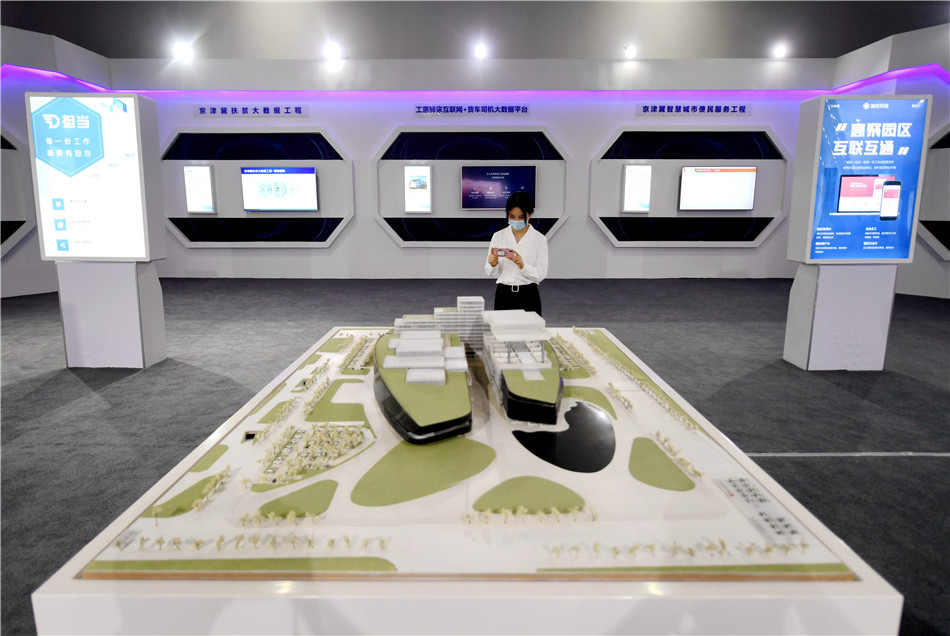 京津冀大数据创新应用中心内的京津冀数字经济生态展(5月13日摄)。 位于河北省廊坊市经济技术开发区的京津冀大数据创新应用中心是河北省第一家大数据产业建筑综合体,总占地面积10.6万平方米,包含体验中心、研发中心、双创中心、应用中心、感知体验中心5大核心功能区。 新华社记者 王晓 摄