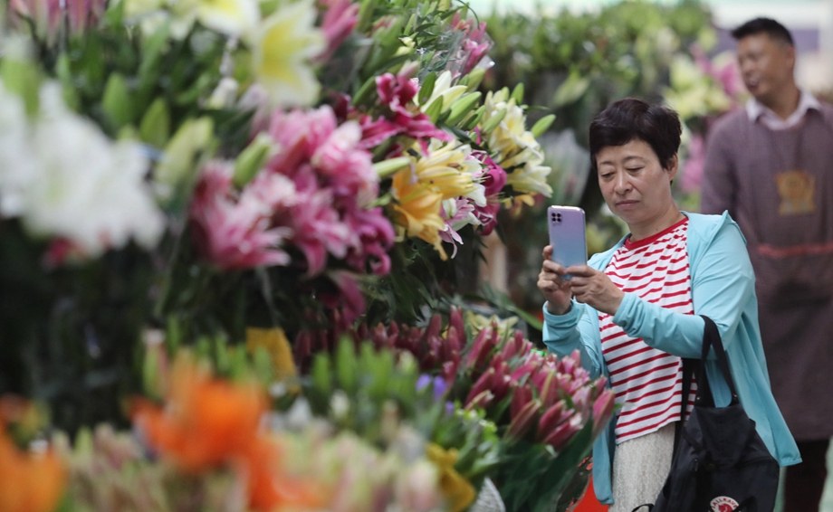 慕名前来的游人在昆明呈贡斗南逛花市、购鲜花,体验云南独具特色的鲜花之旅,度过一段五彩缤纷的假日生活。