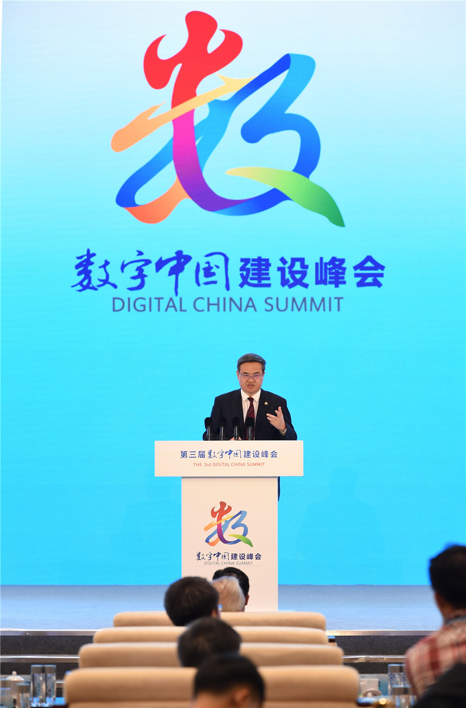 10月12日,中国工程院院士、北京理工大学校长张军在第三届数字中国建设峰会主论坛上演讲。新华社记者姜克红摄