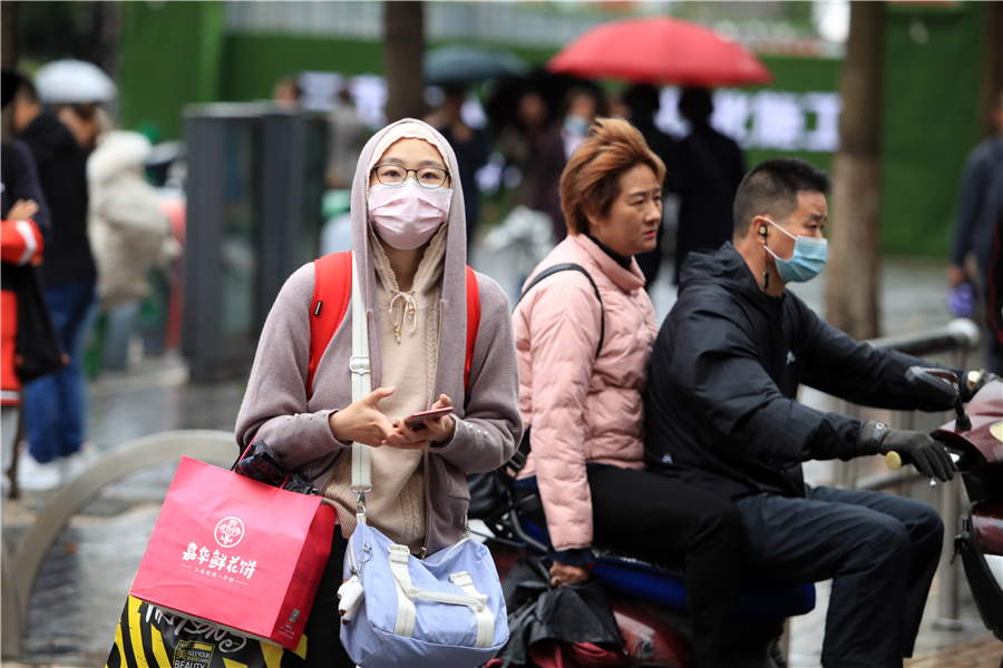 受台风“浪卡”外围云系的影响,10月16日,昆明迎来降温、降雨过程,一雨成冬。南屏街上大风吹起,冻得市民纷纷裹紧衣衫