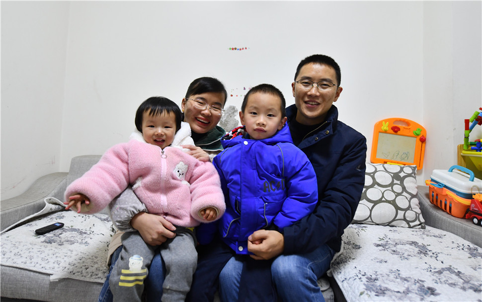 12月18日,回到县城家中的朱彪(右一)和妻子儿女合影。新华社记者 黄孝邦 摄
