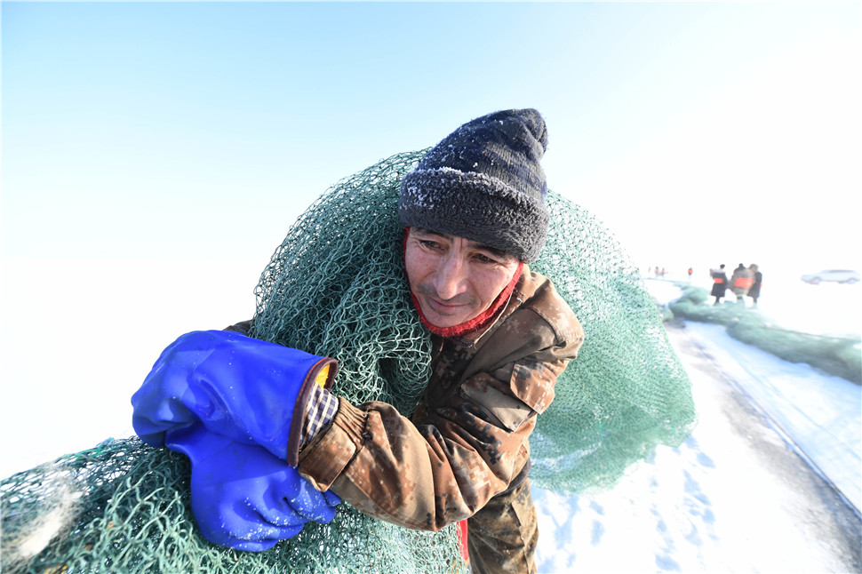 新疆阿勒泰地区福海县乌伦古湖每年12月中下旬进入“冬捕”季。乌伦古湖是中国十大内陆淡水湖之一,冬季冰上大拉网捕鱼是乌伦古湖的传统捕鱼方式,场面壮观。