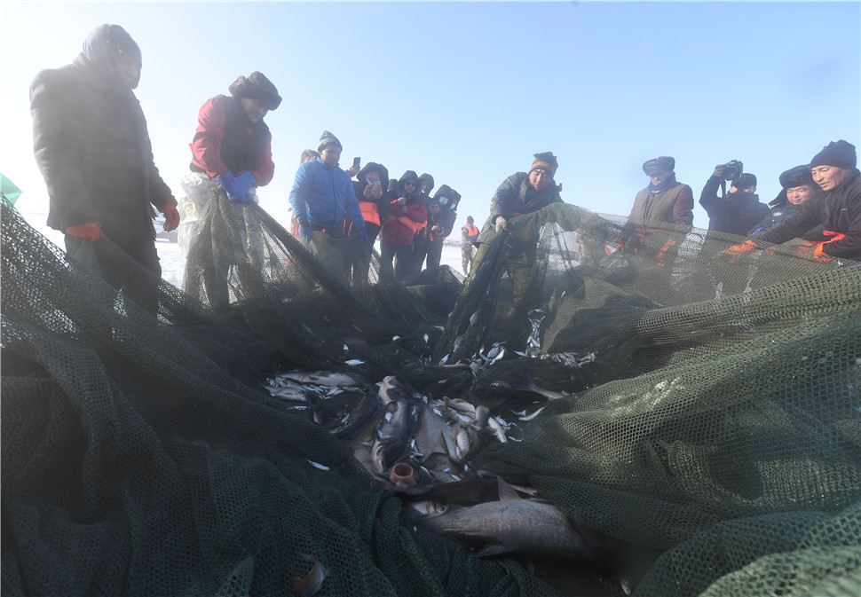 新疆乌伦古湖迎来“冬捕”季