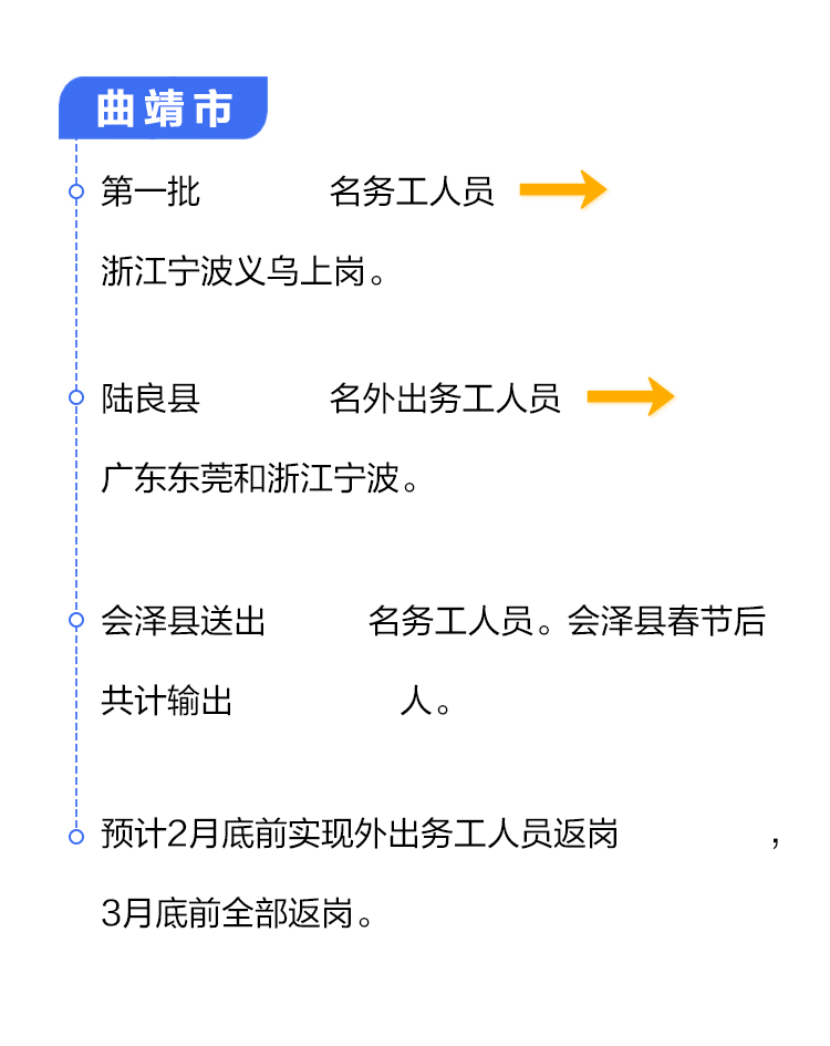 具体细化到各州市来看,通过梳理记者发现,截至2月18日,云南十六个州市中,昭通、曲靖、红河、文山、楚雄、普洱六个州市“送工”最为忙碌。