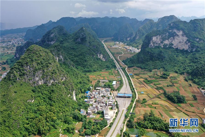 这是兰海高速公路进入广西都安瑶族自治县的道路及收费站(2019年7月23日摄,无人机照片)。新华社记者 陆波岸 摄