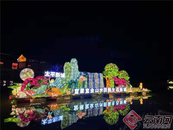 “现代科技·梦起太平”“团结示范·其乐融融”……近日,在昆明西山之巅的安宁市太平新城街道册峨村委会光崀村,1000余盏彩灯被点亮,欣喜的游客从昆明、楚雄等地涌入,观赏“睡美人”景观山脉处别样的中国·云南首届美丽乡村光崀新春大型灯会嘉年华。