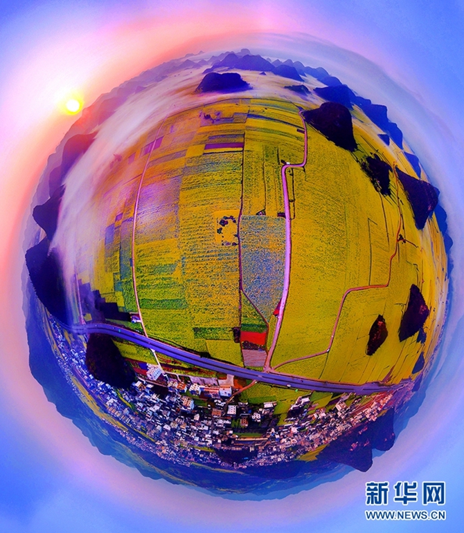 图为航拍视角下的云南罗平油菜花田。新华网发(崔永江 摄)