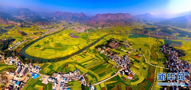 图为航拍视角下的云南罗平油菜花田。新华网发(崔永江 摄)