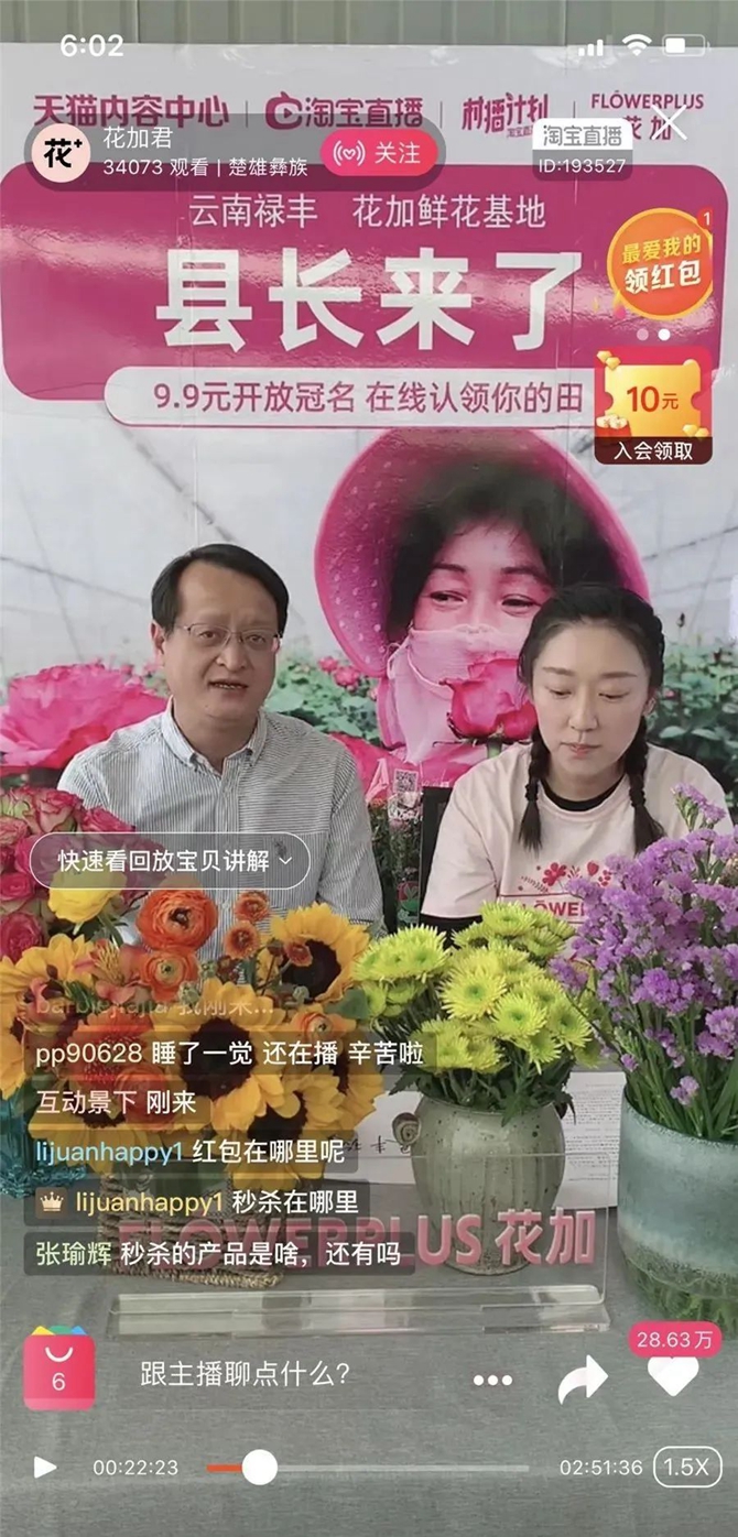 楚雄市禄丰县副县长直播卖花 5秒卖出6.2万支