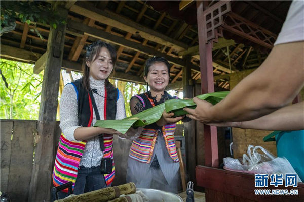 8月13日,村民在基诺山寨内售卖基诺族传统小吃。 近年来,云南省西双版纳傣族自治州景洪市基诺山基诺族乡坚持保护传承基诺族文化,助推“文化旅游扶贫”和“文旅融合”发展。当地以该乡巴亚村委会巴坡村小组为基础打造知名旅游景区基诺山寨,集中展示基诺族特色文化,拓宽基诺族相关文化产品的销售渠道,助力村民就业增收。 新华社记者 陈欣波 摄