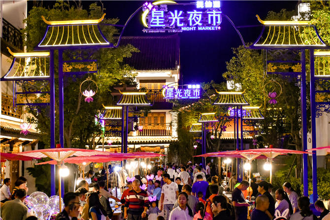 中秋国庆假期,抚仙湖·广龙小镇抚仙湖·星光夜市1期正式开街并正式进入常态化运营,国庆以后游客可以每天傍晚到抚仙湖·广龙小镇逛星光夜市、淘精美的手工艺品、尝云南特色美食、欣赏精彩纷呈的民族名宿表演。国庆开街活动期间,星光夜市还举办了丰富的体验活动,游客可以欣赏云南花灯、民族歌舞等表演,参与篝火晚会、万人狂欢等活动,感受浓郁的云南民族氛围。