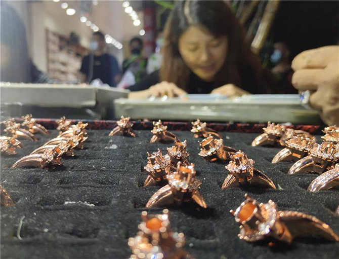 市场里一处销售珠宝的摊位
