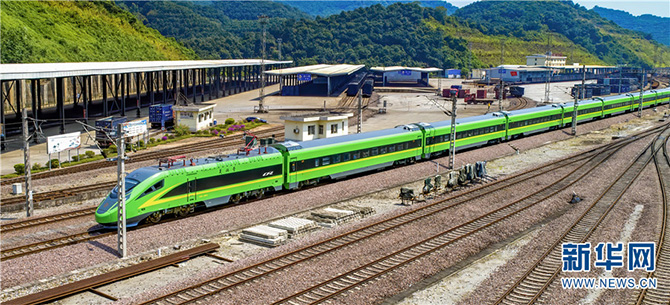 “复兴号”动车驶入河口北站。新华网发(供图)