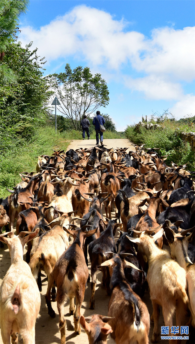 在云南省弥勒市东山镇舍母村委会小横山村,当地利用生态草场优势大力发展生态羊养殖,户均养殖100多只,成为村民们的致富新手段。