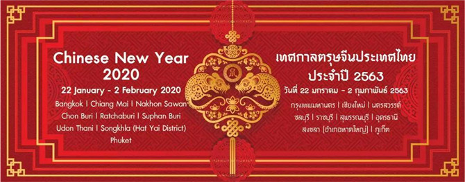 1月9日,泰国国家旅游局驻昆明办事处发布2020年泰国春节系列庆祝活动将于22日正式启动。活动为期12天。期间将在曼谷、清迈、普吉、叻丕、那空沙旺、宋卡等府开展丰富多彩的春节庆祝活动。