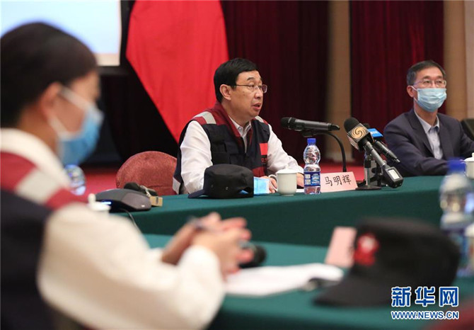 3月29日,在巴基斯坦首都伊斯兰堡中国驻巴大使馆,中国政府赴巴基斯坦抗疫医疗专家组成员通过视频向华侨华人、中资企业和留学生代表介绍防疫知识。新华社记者 刘天 摄