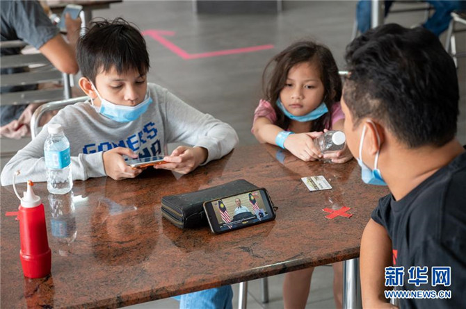 6月7日,在马来西亚吉隆坡,顾客在餐厅观看马来西亚总理穆希丁的电视讲话。新华社记者 朱炜 摄