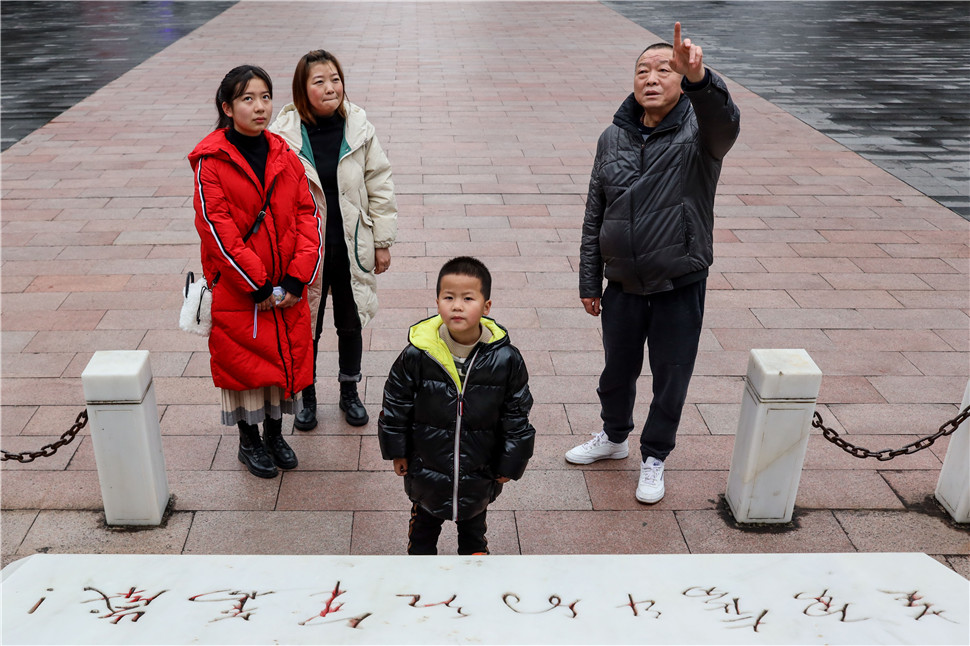 1月25日,杨爱民在遵义红军烈士陵园内为游客宣讲“红军烈士纪念碑”的历史。新华社记者 欧东衢 摄