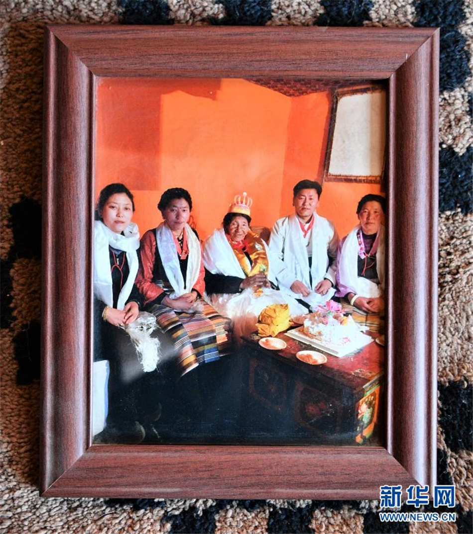 这是家里悬挂的巴桑老人过生日的照片(2月27日摄)
