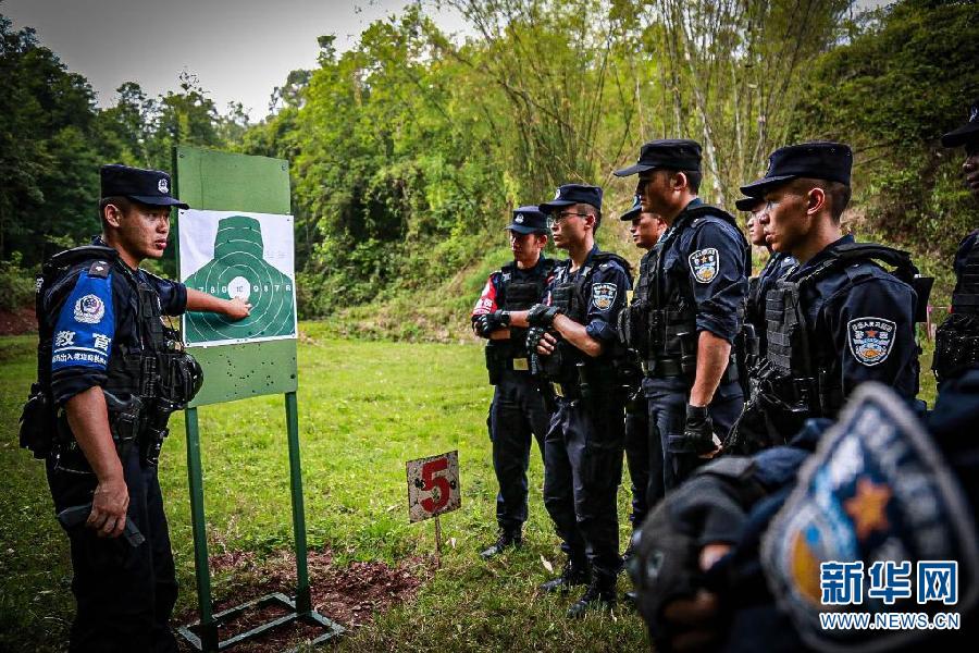 民警正在进行实弹射击考核 子弹出膛瞬间(杨佳林 摄)