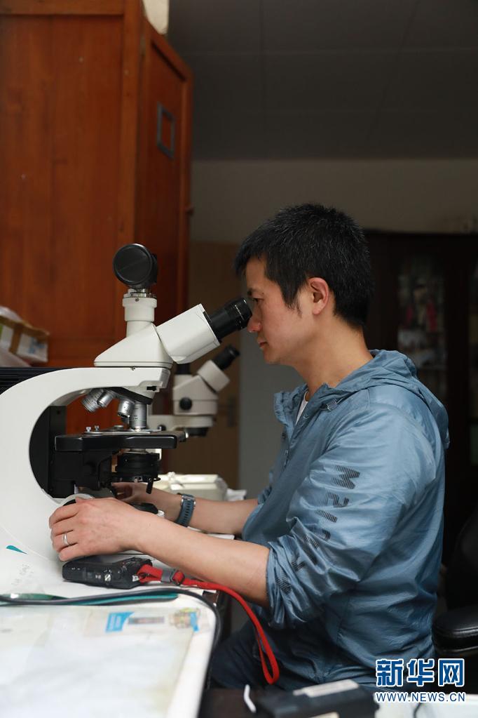 但科学和系统的认识苔藓植物,首先需要从大量的野外观察中形成苔藓植物的感性认识体系;然后再在干燥蜷缩甚至褪色的标本、显微镜下叶形和细胞结构、文献中的描述和绘图之间,建立起相互关联的认知体系,才能够游刃有余地开展物种鉴定等相关工作。图为马文章回到实验室,在显微镜下观察苔藓(6月5日摄)。