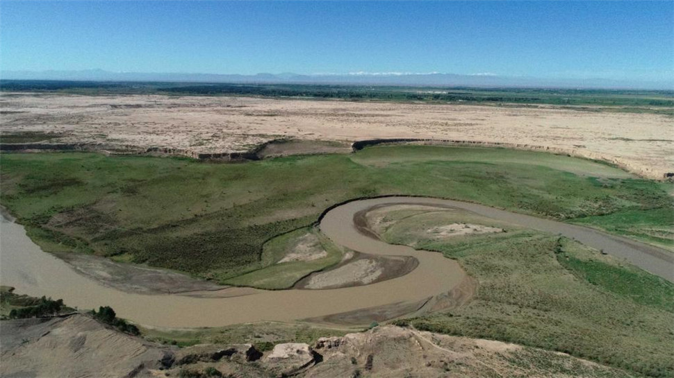 瓜州境内的疏勒河,下方为瓜州桥湾古城遗址。新华社记者 刘诗平摄