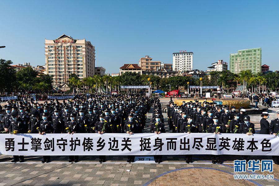 12月8日上午,缉毒英雄蔡晓东同志遗体送别仪式在云南省西双版纳傣族自治州景洪市泼水广场举行。