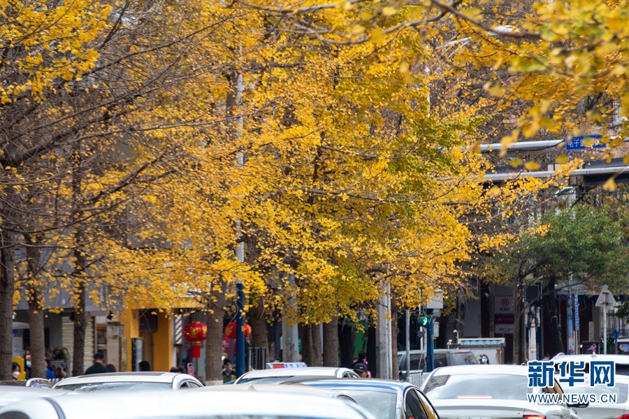 昆明文林街,银杏飘金,美不胜收(摄于12月10日)。(新华网 李浩/摄)