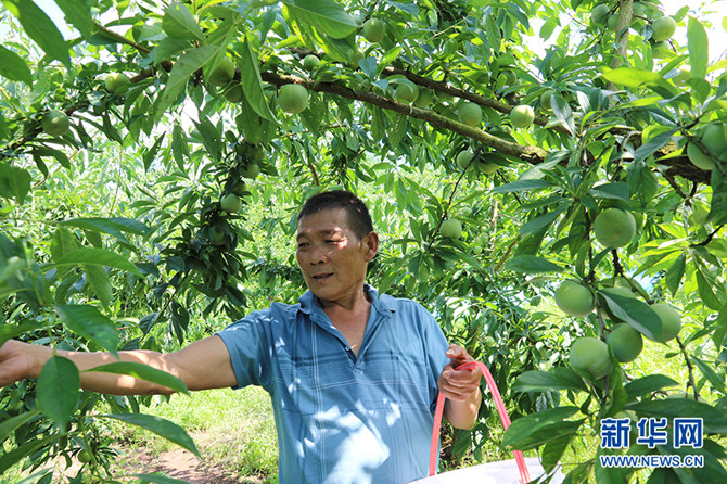 重庆市奉节县石岗乡镇江村村民正在采摘脆李。新华网发(谢模燕 摄)