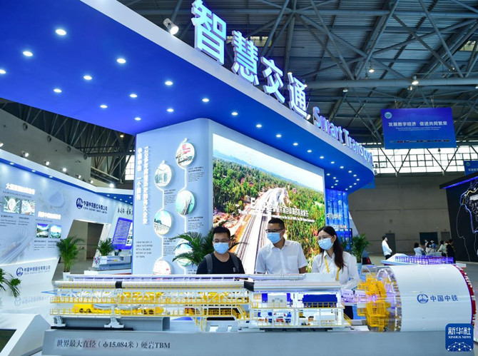 8月23日,观众在2021智博会中国中铁馆参观。新华社记者 王全超 摄