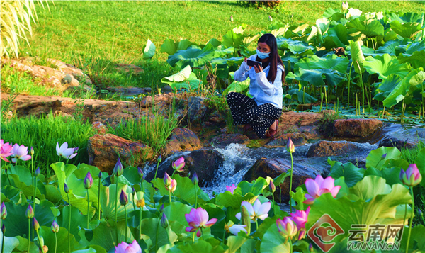 从甸溪河锦屏山至弥师路累计7.3公里的河道内,在高低起伏的大大小小数十个河塘中,荷花次第开放。受地势、气候、水域的影响,甸溪河道内的夏荷从5月一直开到7月,开启了长达三个月的赏荷模式。