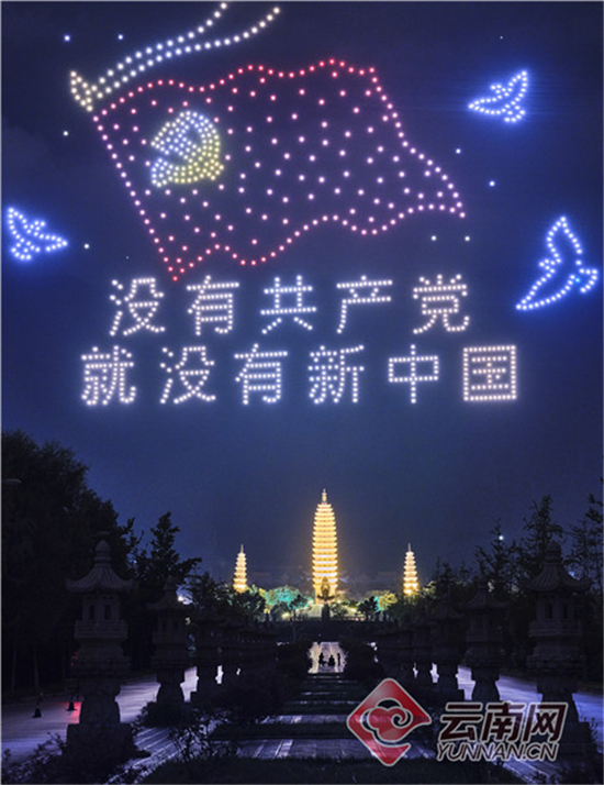 7月9日21时,“科技追光、遇见大理”无人机表演秀在云南省大理白族自治州大理市举行。2021架无人机编队呈现出十三组生动的图景,充分展现了大理人文历史、自然风光、民族风情,也充分表达了大理人民心向党、永远跟党走的决心。