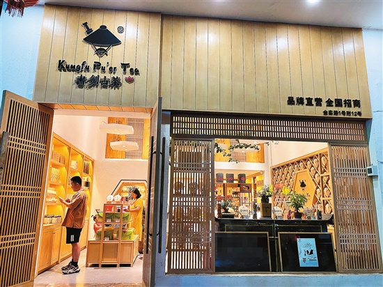 夜晚,春城霓虹闪烁,在雄达茶城1号门旁的书剑古茶店飘出阵阵的茶香,已是晚上9时,但闻香而入的游客们还依然不少。该店店长王佳雪告诉记者,从今年4月开始,茶城将营业时间延长至晚上9时30分,“最近,晚上到店体验、消费的人流量明显增加了许多。”
