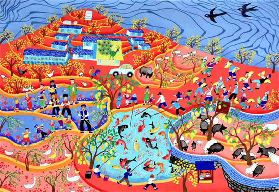 日常生活就是生物多样性。“我觉得世界很美好,生活中我画画、耕种、养牛养鸡,小鸟就是我的闹钟,知了叫让我心情愉悦。与万物和谐共生,这是我的生活,也是我理解的生物多样性。”农民画家卓丽萍说,一直以来,她画的都是自己的生活,但欣赏过她的画作后,我发现,几乎每幅作品都传递出动植物与人和谐相处的理念。