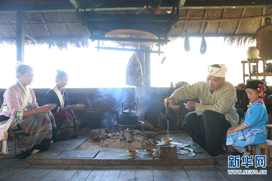 村民在品茶。新华网发(普洱市委宣传部 供图)