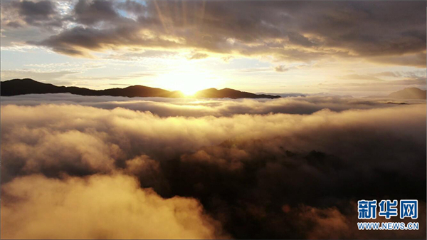 冬日时节,航拍云南西双版纳傣族自治州景洪市、勐海县云海,云雾涌动,令人流连忘返的画卷,在群山间缓缓展开。新华网发(李云生12月摄