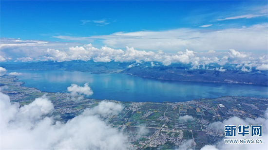 航拍镜头下苍山洱海间云雾缭绕(9月29日摄)。新华网 李浩 摄