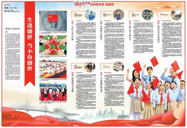 “我们追忆/一团烈火的熄灭/一瞥闪电的消失/是哪一个/在临死的时刻/才叹息着说/活了一辈子/还没有让生命的光华放射”。在烈士纪念日,重温烈士蔡梦蔚的诗作,让人热血沸腾。在国庆日,看着国旗飘扬,公路上车辆流动快乐音符,商场里、广场上群众绽放一张张笑脸,更让人感到身上生出一股力量,不由得心生感慨:生逢盛世,当不负盛世,让生命的光华放射。