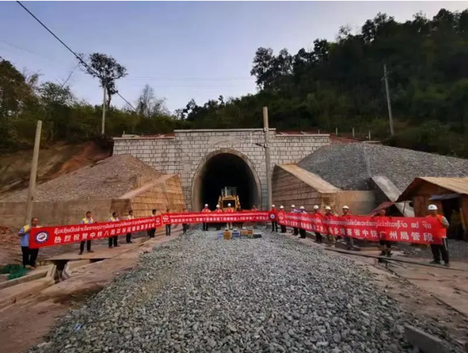 2020年9月22日,由中铁八局承建的全线控制性工程,全线第四长的I级高风险隧道——福格村隧道顺利贯通,福格村隧道位于老挝乌多姆赛省孟阿县,全长8.936公里,隧道最大埋深约740米,采用进口、出口加上“两斜井辅助坑道”模式施工。这是中老昆万铁路全线最后一条长隧道。