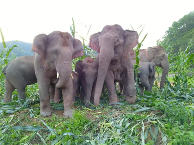 景洪市林草局党组成员、景洪市县级自然保护区管护局副局长査伟告诉记者,这1000亩食物源补给区分布在景洪市大渡岗乡、景讷乡、勐旺乡。他说:“已经有一批大象在景讷乡食源地里觅食,‘大象食堂’开始营业了。”