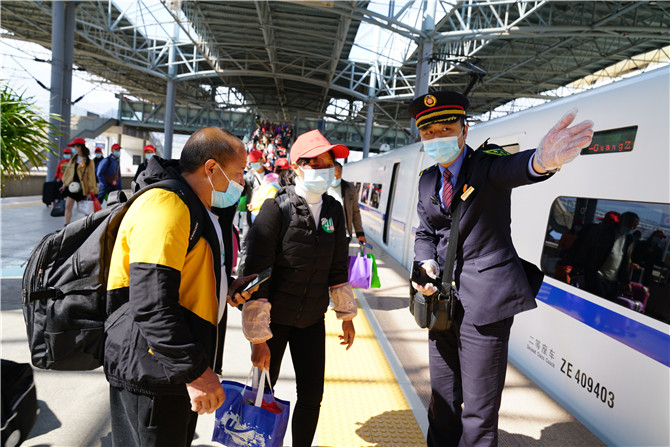 电子客票、刷脸验证、一证通行,检票速度由3.8秒缩短至1.3秒,每分钟有250多人选择高铁动车出行。