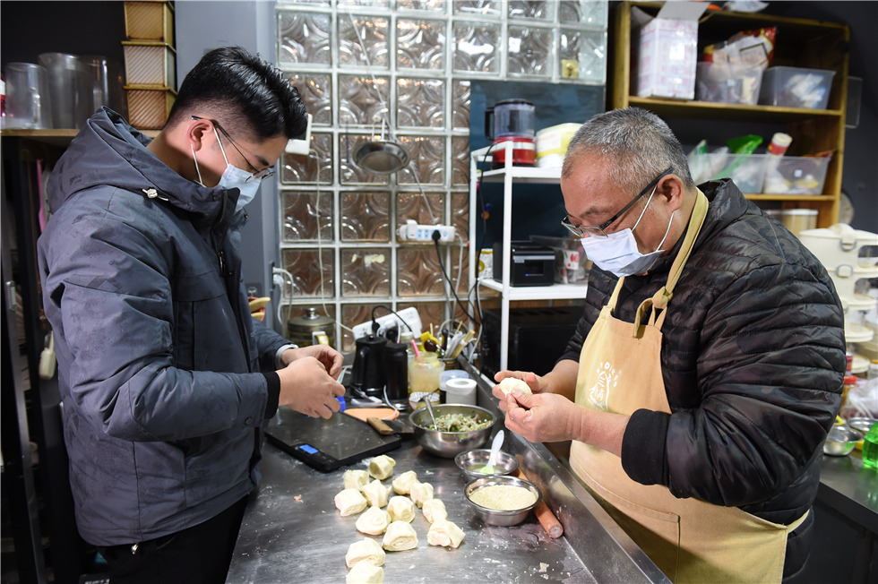 黄山市徽州区西溪南镇的居民在制作萝卜丝饼(1月19日摄)。新华社记者 周牧 摄