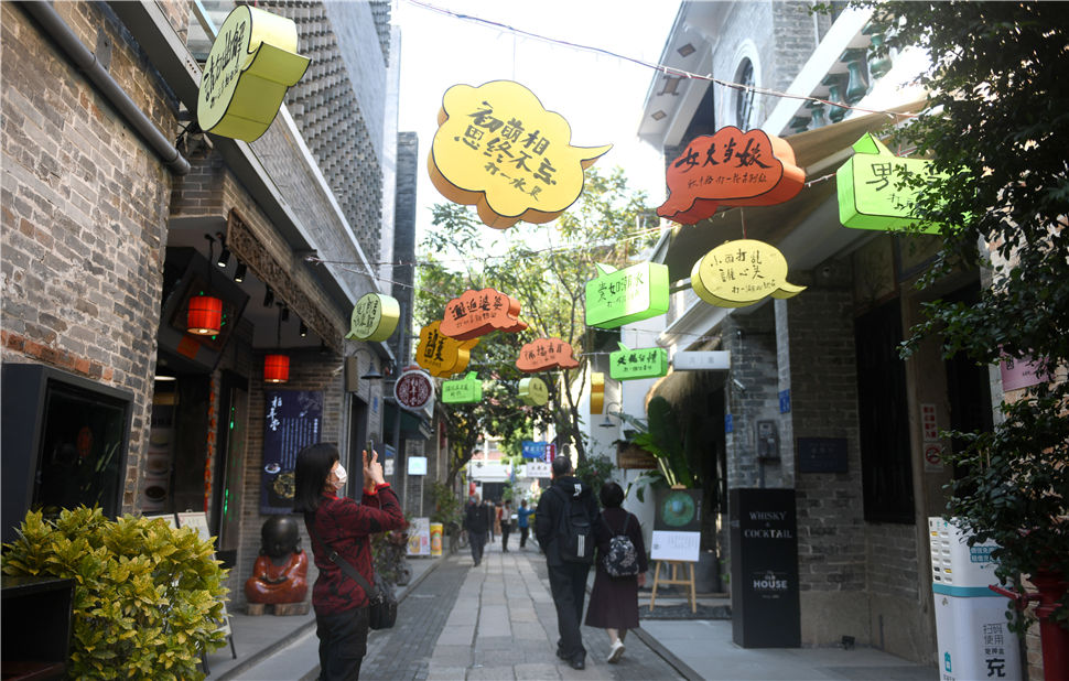 2月15日,市民在广州永庆坊拍摄灯谜。