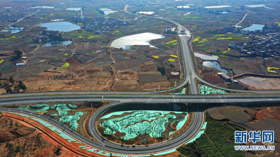航拍视角下的宾(川)南(涧)高速(2月10日摄)。新华网发 (宾川县融媒体中心供图)
