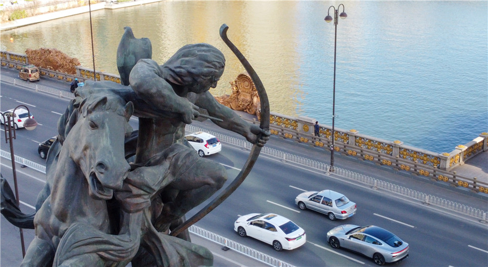 3月27日拍摄的天津大光明桥一景(无人机照片)。