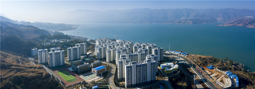 一栋栋崭新的楼房在金沙江边矗立,安置区内学校、农贸市场、卫生院一应俱全,宽阔的道路、优美的绿化,孩子们在院子里嬉戏打闹,老人们闲坐聊天……一个湖滨旅游生态城市正在金沙江畔崛起。