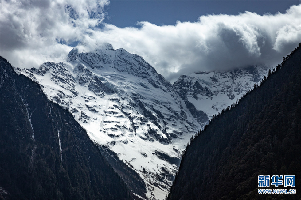 在下雨崩拍摄到的雪山(3月29日摄)。新华网 刘东摄
